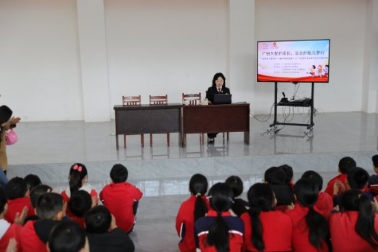 为深化 "广纳大爱 元梦未来"儿童关爱服务品牌"2+2" 延伸替代服务项目(2025)内涵,切实筑牢未成年人安全防护屏障,增强青少年法治意识和自我保护能力,2026年4月1日,广元市利州区一心社会工作服务中心联合朝天区人民检察院走进朝天区中子实验学校开展 “广纳大爱护成长 法治护航元梦行” 防校园霸凌、防性侵专题法治宣讲活动。